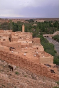 We left behind chaotic Fez and travelled south to Midelt. I didn’t realise how green Morocco would be, with valleys of rich green fields where they grow dates, figs, apples, pomegranates, alfalfa, and of course olives! Lots of families on the roadside having picnics. We climbed the Middle Atlas Mountains where we saw monkeys, and over the other side it was rocky and dry ( similar to the west coast and east coast of South Island) and very hot – at least 30 deg which is hot for me! The Moroccans have a simple and effective irrigation systems which feeds into beautiful oases – we stopped at one for a picnic lunch with food bought from a local market. Eventually we reached our destination – an old farm house turned into a hotel next to a sweet Berber town (Berbers are the original Moroccan people who lived in Morocco before the Arabs invaded, mainly live in rural areas but also cities). The hotel was basically a decorated farmhouse with a homely feel to it and not flash but comfortable. We took a two hour walk visiting a small canyon and a local mud-brick village called Berram where the local kids were very curious and sweet. It’s great having a Berber guide who can help us interact with them! Their orchards were beautiful as the apple trees were all in blossom,and we zigzagged back to our hotel by following the irrigation which looks like small creeks. That evening Monoploy Deal was pulled out and all the girls won! Sahara safari tomorrow -Yahooo!