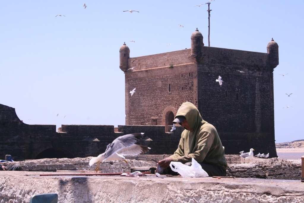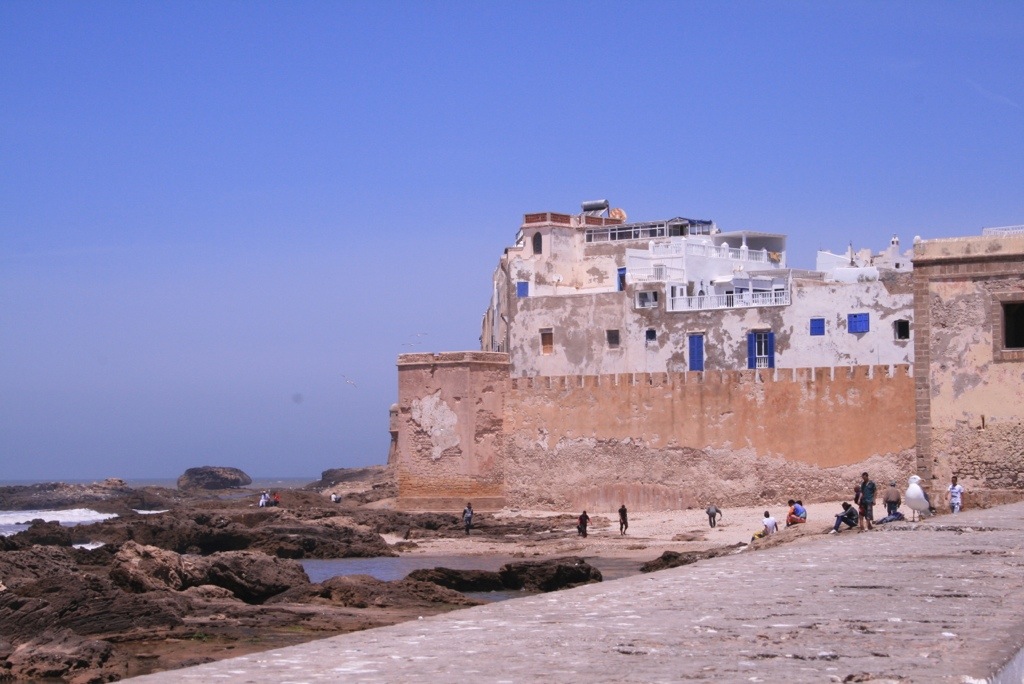 Scott : Off to Essaouira, a seaside town, famous for a 6km beach that attract thousands of tourists of Europe in search of sun and sound, and a fortified town that was the setting for Olson wells movie Othello. The lonely planet however describes it as ‘ definitely Moroccan; narrow alleys ways, the wind that reputedly drives people crazy, and the smells of fish guts and damp seas’.