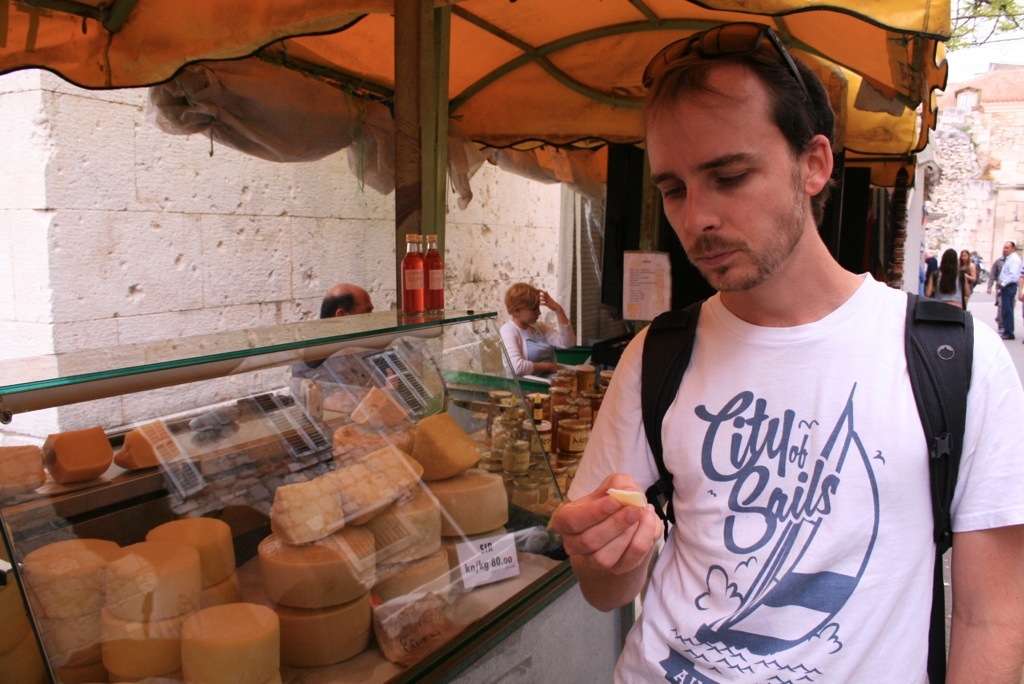 Split is a gorgeous town, buzzing with tourists but not too crowded. It has a great promenade along the water right next to the port where huge numerous ferries come and go all day. Countless restaurants, cafes, gelato and pizza stalls line the narrow white marble streets inside the Diocletian Palace ( right by the waterfront) and the shopping is awesome! Lots of small fashions boutiques, shoe and bag shops every block, and of course the larger franchise stores if required. The atmosphere was so relaxed, it was so nice to stroll through the old town by the water front, and the market ( bought white shell earrings and big hat for our up-coming cruise) which sold everything from cheese, meat, clothes, jewellery, fresh fruit and veg.
