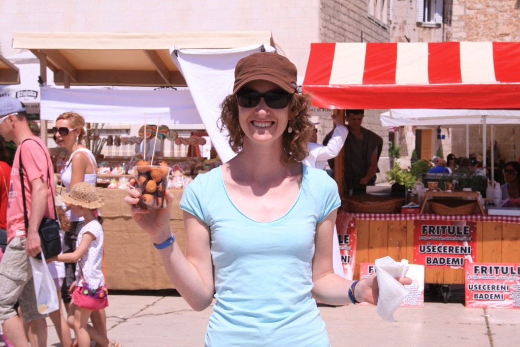 We had a yummy lunch of fresh bread and local prachetto (a welcome change from pizza) and Croatian donuts – deep fried balls of dough covered in chocolate YUM! The luxurious boats the lined the town made us a bit envious, so much money around!