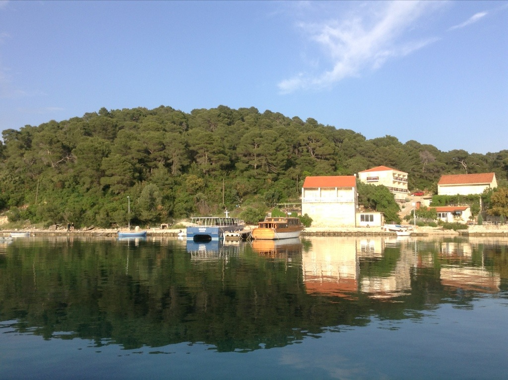We left at 7am the following day, but it was sweet as we could stay in bed and still travel! Again we chilled out on the deck, read books and admired the views as we made our way to Mljet island – one of the most stunning in Croatia. Inside the island are two lakes that look similar to the green lake in Rotorua, a beautiful green-aqua colour, and in one lake is a small island with an old monastery on it. We visited that by catching a taxi boat, then hired bikes and gave my knee a much needed work out by biking following the lake around to the sea where many years ago the monks had built s channel connecting the lakes and sea ( and apparently destroying the lakes). It was quite peaceful, and the scenery remind us of NZ with the green bush covering the rest of the island. We had a cold refreshing swim with some of the others and finished the day off with pizza and a gin and tonic.Happy hour on the boat that night with 12 people game of ‘asshole’ (card game) – our bar man comes up with some interesting cocktails and shots, he calls them ‘surprise’s’ -i think i’ll stick to my gin and tonics!