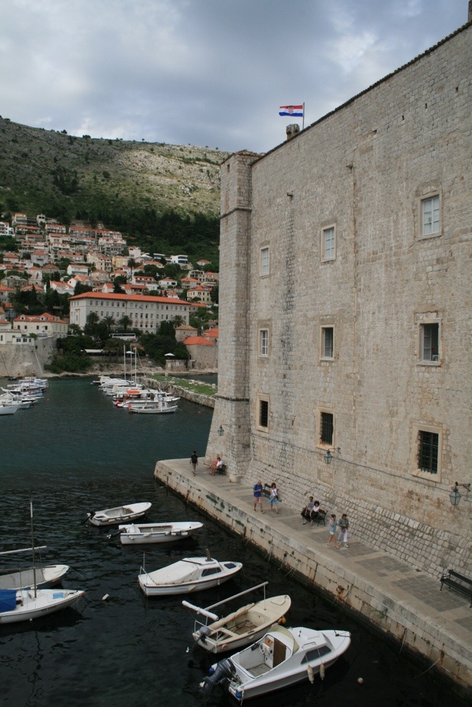 The following day was rainy with thunderstorms and quite cool so no swimming 😦 we arrived in Dubrovnik at lunch time and didn’t leave until 24 hours later so had plenty of time to explore the old beautiful town that has a large history of attacks and war, the most recent being caught in the former Yugoslav war in 1991-1992. It is such a stunning town, most impressive is the thick wall (6m in some parts) that surrounds the old town. The streets are marbles which looked amazing that night in the rain with the lights shimmering against it, and building in baroque style. We got half price ice creams ( deal with sail croatia) before slowly meandering along the top of the wall (2km) admiring the Adriatic sea and taking lots of photos (see below)! We spent a while on the wall as weather not too hot and not many people around at all ( the following day it was bright and sunny, accompanied by hundreds of people and long ques).