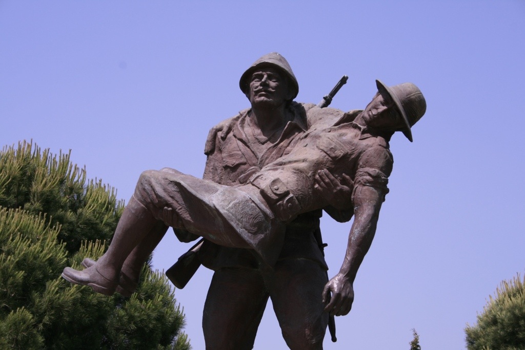 We first visit ‘Lone Pine Cemetery’, commonly referred to as the Australian memorial; a single large tree dominating the small area where 7000 men died over 4 days. The evidence of trenches by the road side brings home the reality of the conflict. Beside this area is a statue depicting a ‘Mehmet’ or Turkish solider carrying a wounded Anzac back to the allied trenches. The story is famously recounted many times over, often referred to as the point which changed the way the Anzacs viewed the enemy. The bronze cast statues are amazing.