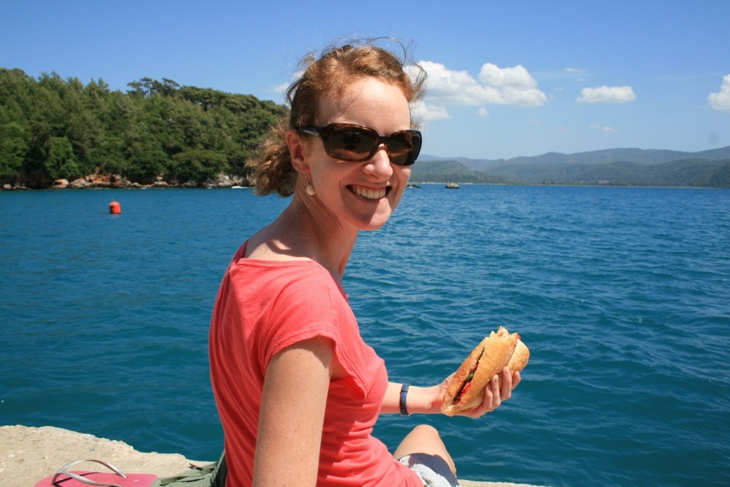 Waking up to an awesome view across the harbour, we had a great morning skyping, then left just before lunch to explore these beautiful beaches that has the tourists flocking in. Beach number one – white plastic deck chairs lined up in rows and columns on the beach with resorts backing immediately on the beach, and a small area marked out in the sea as a swim area = we flagged that one! We figured most of the beaches on the peninsula would be similar, we were after a plain beach where people just lie on the sand and everyone could enjoy the natural beautiful surroundings (?beach snobs)
