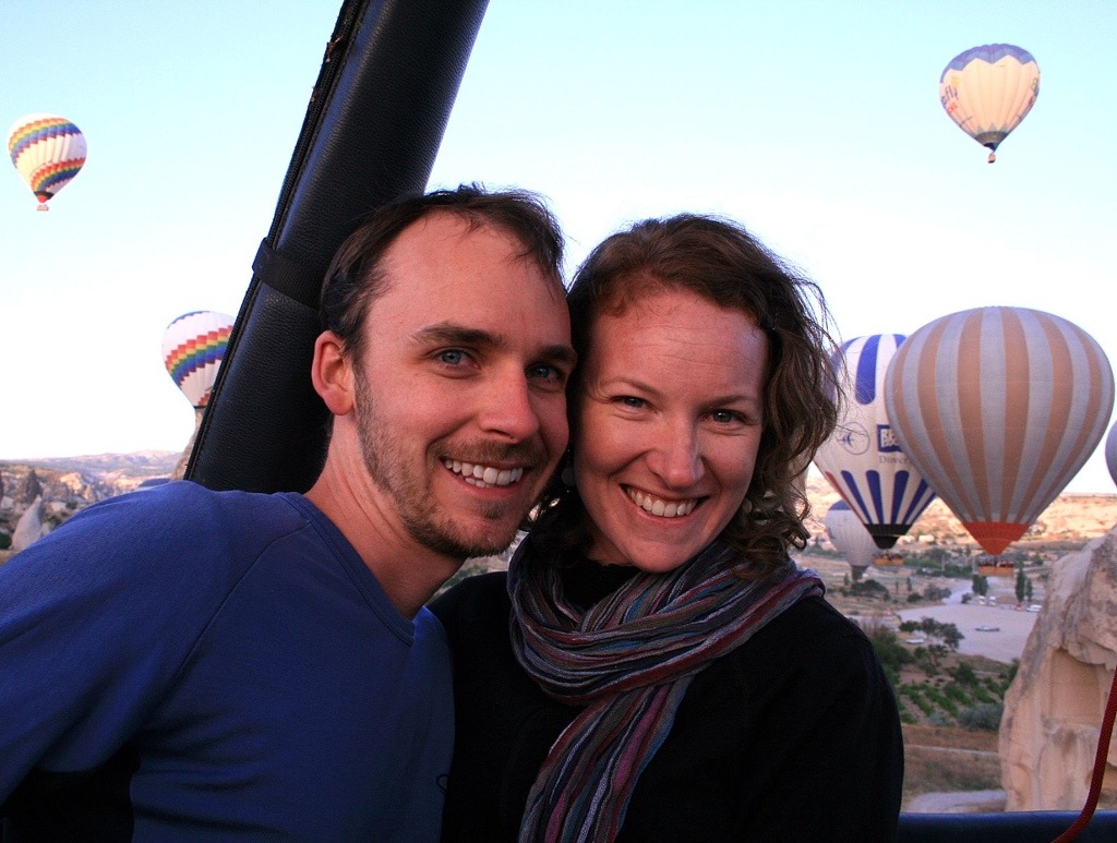 It’s another 4 am loud-speaker wake up call for us. But we get up excited as we are off hot air ballooning this morning!! There are lots of companies offering flights; but a massive variation in price, based on duration, breakfast being offered, number of people in the basket, and quality and experience of the pilot. Since there had recently been an accident between two of the budget companies we decided to go with the 2nd best option, spending a little bit more money on quality.