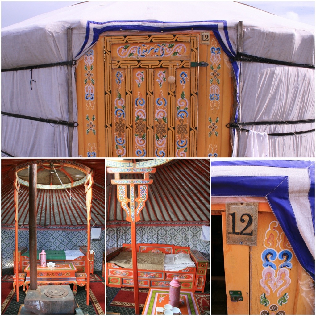 The Ger camp was a bit touristy, but it helps the horse conservation project so we didn’t mind to much. The Ger was fun, its like a small round marquee, with 3 beds in it, and a small wood fire stove in the centre that is lit at night for heat – then its like a sauna! It actually got quite cold so most of us had our fires lit. The two main rules of the ger are you’re not allowed to step on the threshold on the front door and you’re not allowed to walk between the two poles in the centre of the ger. The ger’s are used by the nomads, of which there are still plenty around and visible, and we also noticed as an additional building to houses on private property’s. They take about 8 hours to put up!