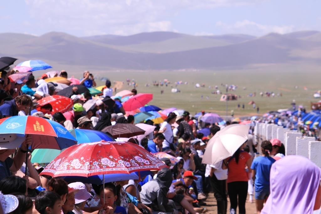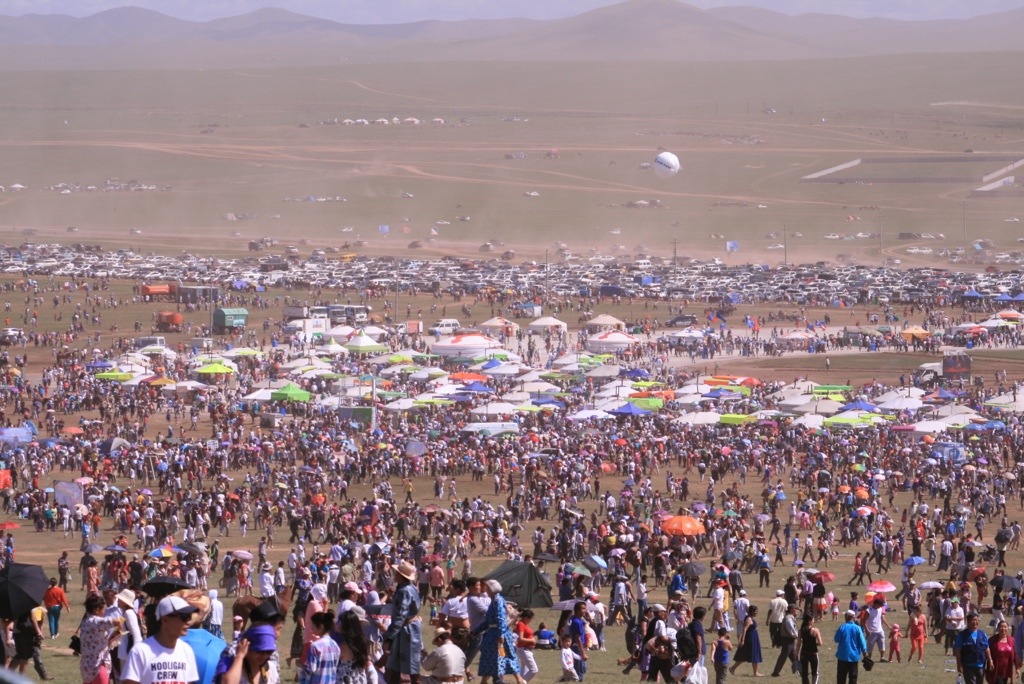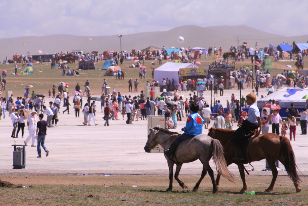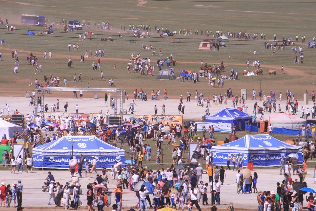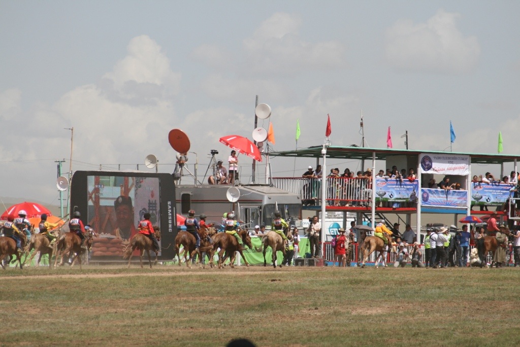 The following day we headed out to watch the horse racing. This was at Hui Doloon Khutang, a long stretch of open ground about 28 km out of town which has long been used as the traditional national horse racing venue. In previous years, it has typically been a ‘parking free for all’ on the surrounding hills, dust clouds enveloping the area as people drive off road to avoid the massive traffic jams. This year they have a new paved road, and designated parking areas (although no one pays attention to ticket permits at all!).