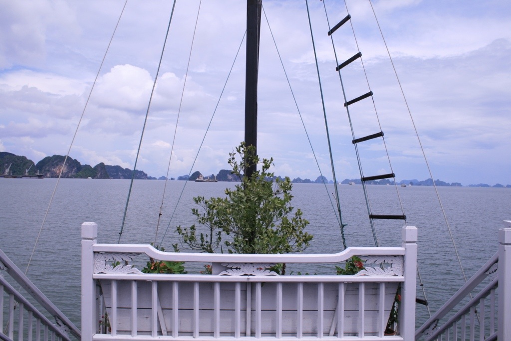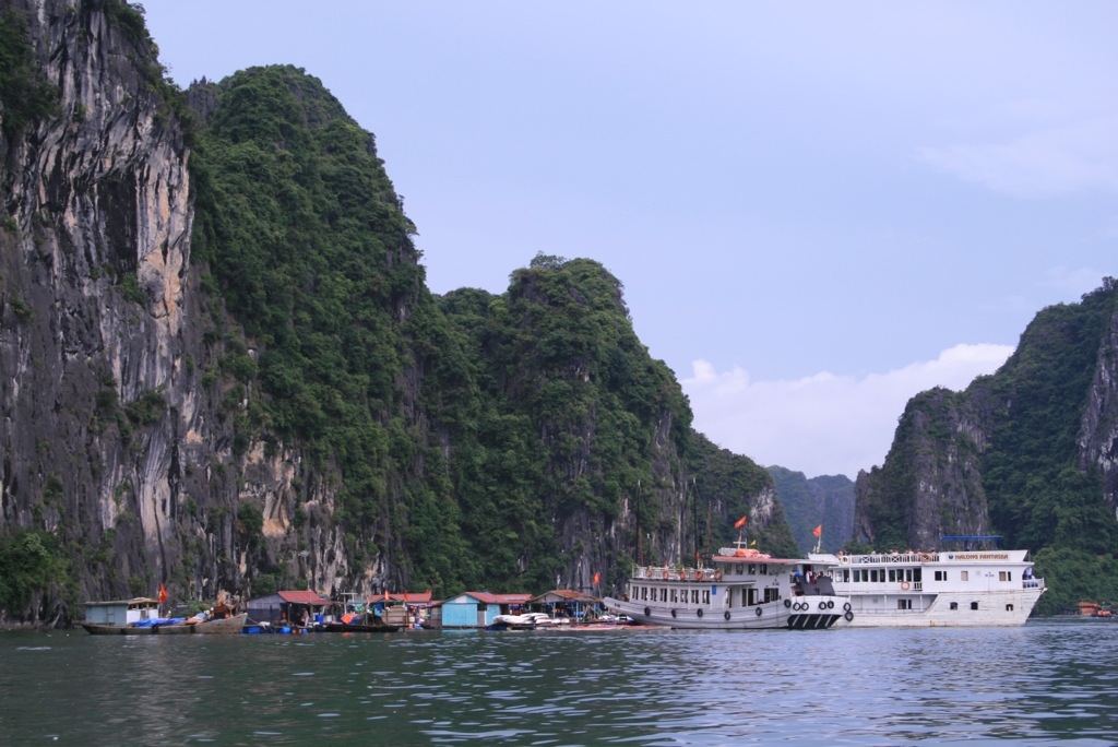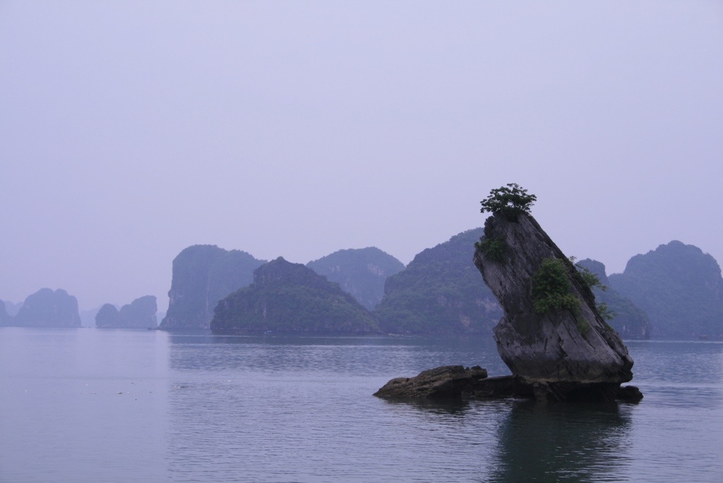 Emily : A three and half hour trip east of Hanoi found us in Halong City boarding an overnight cruise into Halong Bay, which has more than 2000 limestone islands rising high above the sea, as if a dragon has swum through the Gulf of Tonkin. It was designated a World heritage site in 1994.