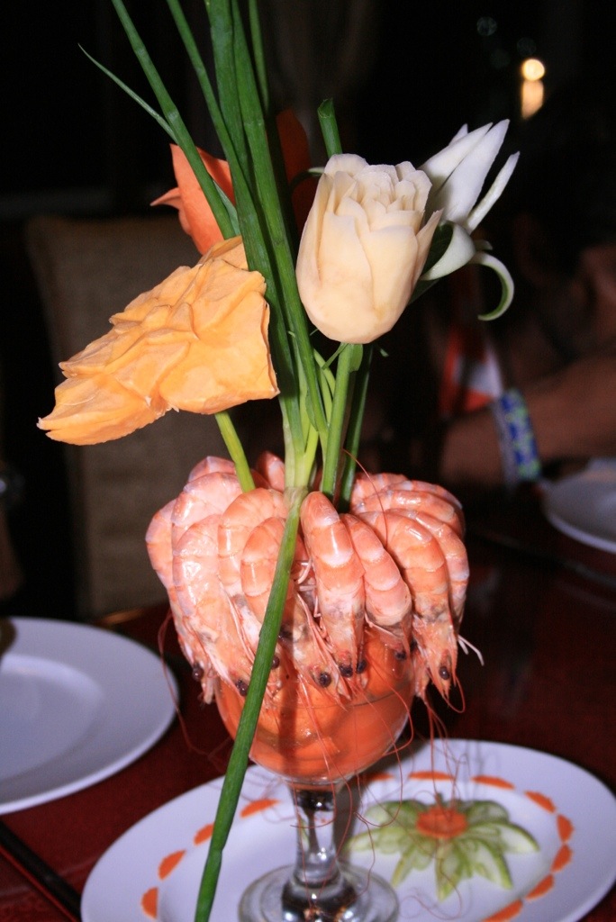 The food was amazing on board, (they love carving patterns and sculptures it of veges!) and we had a chance to make spring rolls – must make them when we get home!