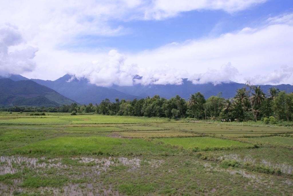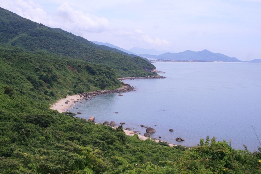 Given our transport experiences in recent weeks, we took a while deciding on how best to head south. Despite the cheap price, ‘Open style’ buses seem to get a hard time amongst travellers. They took the rather boring highway, stopping in Danang at various hotels ( from which they get commission) to pick up extra seat fillers. We settled on getting the soft seat train; mixing it with the locals as the train snakes along the coast and up through a mountain pass. As with the previous train, an hour was spent waiting for a late train. Our seats though were on the left side; giving us a great view as we cruised (sometimes at walking pace) along the coast, directly above beautiful coves. It was great to mix with local travellers; children running up and down the aisle, food service carts rushing through the carriage, not a tourist in sight. The best camera point for photos outside however was the toilet window, a difficult vantage point given the frequent puddles and sticky walls.