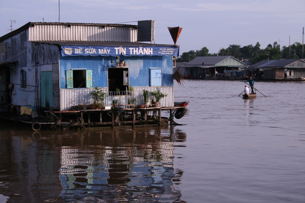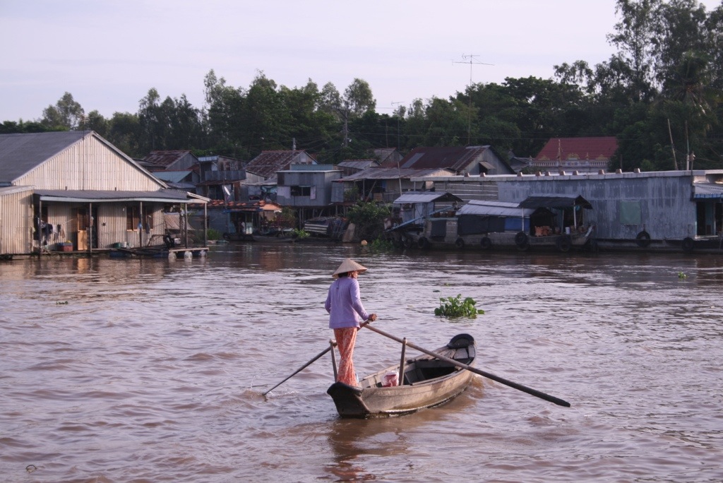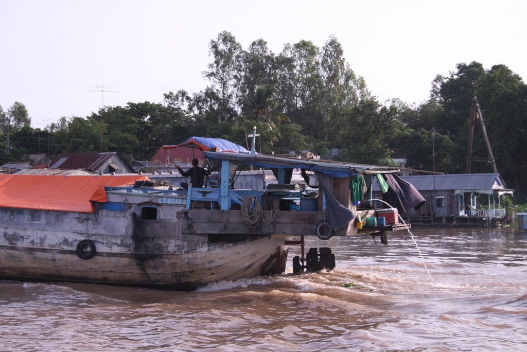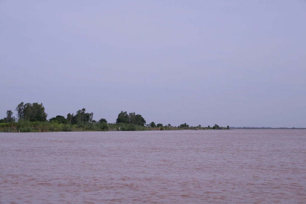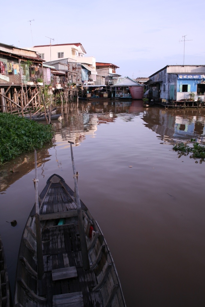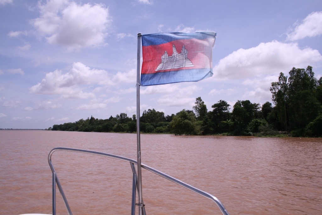 The express boat through to Cambodia – what better way to see the Mekong while travelling! We woke at 5.30am to get breakfast at 6am as we were leaving the hotel at 6.30am – by the time the boat left at 8.30am we were ready for lunch! The boat was like a floating bus, double seats each side, except the AC was provided by an open front windscreen which occasionally gave a free sample of the muddy brown Mekong water! Overall though, it was a comfortable ride, and we got to see farmers working their crops and cattle along the riverside. The change in landscape was interesting, much more plantation and jungle areas on the Cambodian side which was really pretty. The border crossing was about one hour up the river, and was pretty efficient in contrast to other borders controls we’ve passed through – mind you, we did ‘have’ to pay an additional $4 US for the privilege (grrrr!). We changed our remaining Vietnamese dong with the ‘official’ currency exchange lady, who wandered around the waiting hall with wads of cash in her bumbag and changed cash for a terrible exchange rate. After 5 hours in the boat, we began to see Phnom Penh creep slowly into the horizon. As soon as we arrived, we were offered many TukTuk rides from various drivers, ‘where are you going?’, ‘I can arranged a hotel’, ‘where you from?’ Etc. Luckily we knew the direction of our hotel and escaped them quickly! As is customary for us, we had an expensive lunch as our first meal in a new country! Our stomachs needed food.
