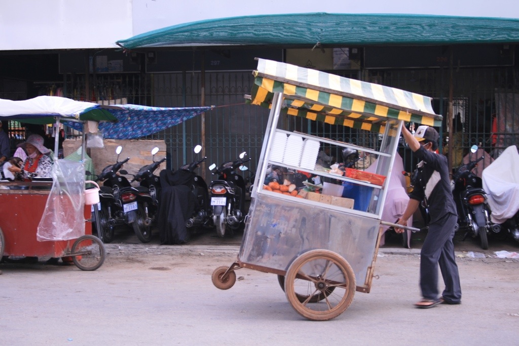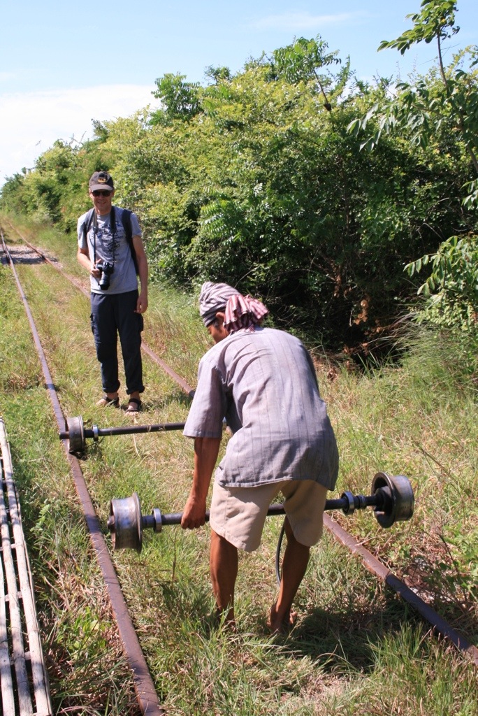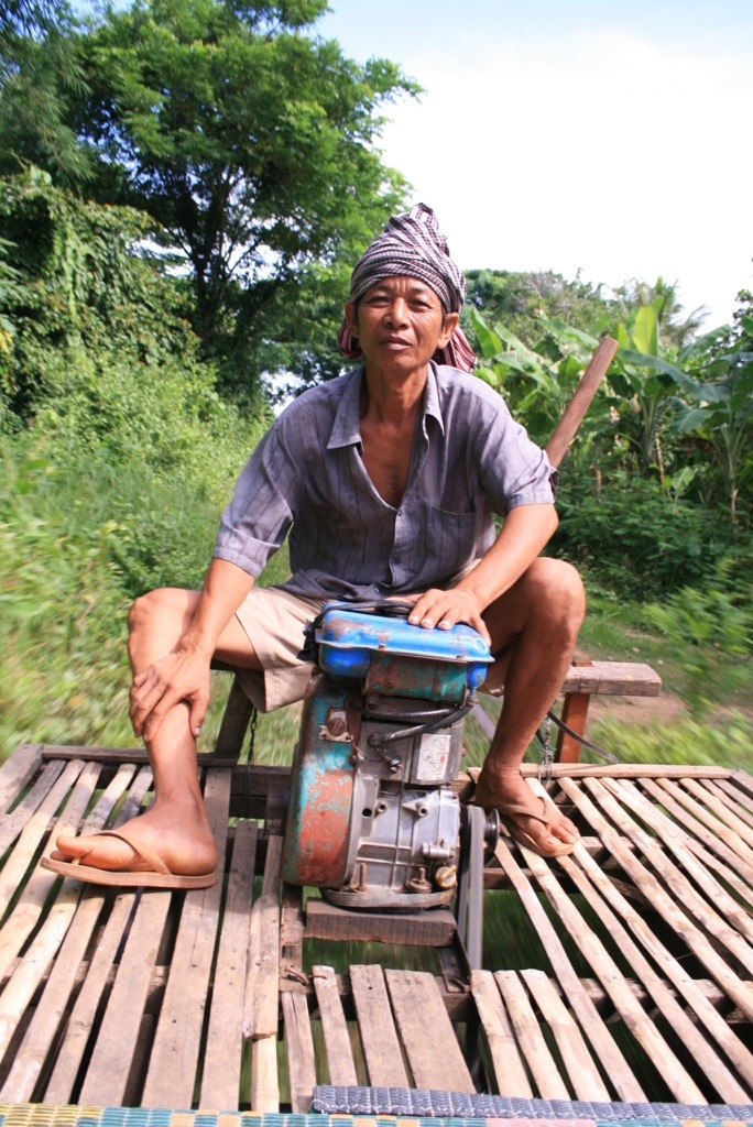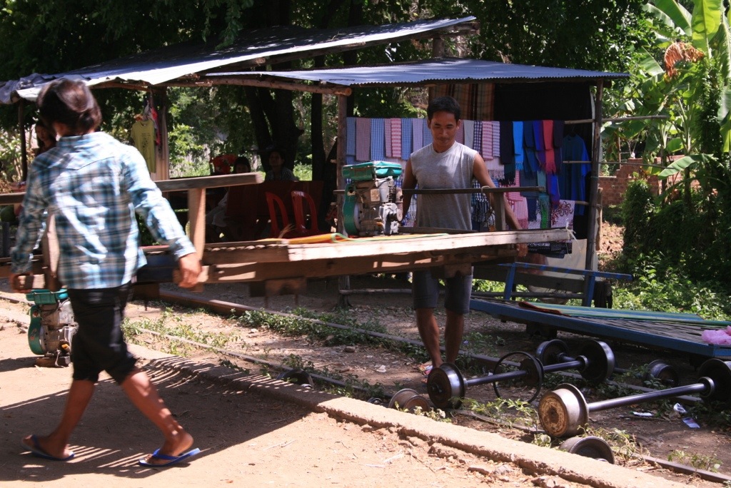 Having completed one of the worlds classic train rides already across Russia-Mongolia-China, why not add to the list? Except this time it was much shorter, 3.7km on Battambang’s classic bamboo train! It runs along an old rail line left by the French, and consists of a 3m bamboo platform resting on two barbell-like boggies. It runs off what could be considered a lawn mower engine, loud, smelly, with a pull string to start. So we raced along the track at 15kph, bumping across the track connections and slanting to the left and right in reflection of the uneven tracks. It was quite hot being in the direct sun, I forgot my hat and my umbrella kept being blown inside out, but otherwise it was a lot of fun, similar to a theme park ride but more raw and risky! On reaching the next ‘station’, we got off and wondered round, being offered cold drinks, food, clothes etc by multiple store holders, and even had a 5 year old boy start to guide us through a brick making factory!