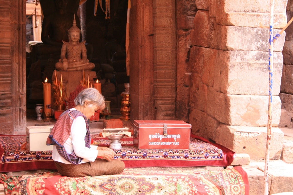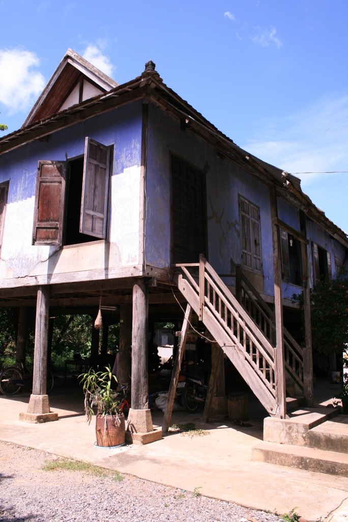 Back on the tuktuk, we zigzagged through dirt roads to see an old traditional Cambodian house, greeted by an elderly lady who still lives there. She is the great-granddaughter of the original owners. The stilt house was made of hard wood, with one large room separated simply into various rooms and decorated with old family photos, certificates and old traditional furniture. During the day, the family hangs out under the house, lying in hammocks, cooking on the open fire (just away from the house). The house was surrounded by a beautiful orchard, as was most of the area.