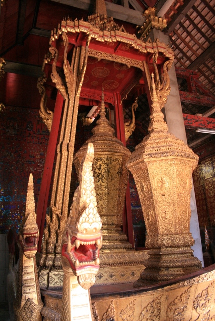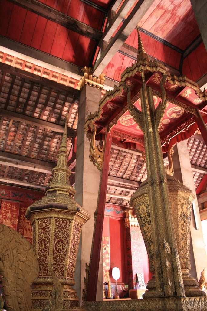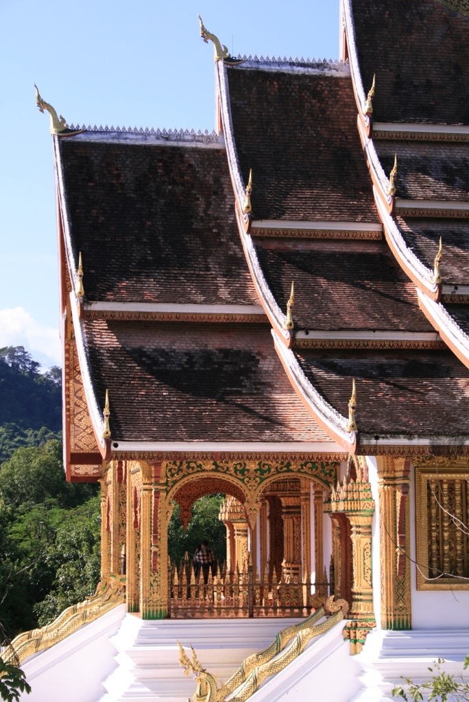 Having a walk around town, we headed towards Wat Xieng Thong, once the royal monastery built in 1560, where many Lao Kings have been crowned. It had an understated elegance in the beautiful glass mosaic and gold leaf stencilling on the doors. The royal chariot was pretty impressive, although set in a rather intimidating temple with thousands of small Buddha figurines staring down. Following lunch and a few ice coffees, we headed to the royal palace, a beautiful building set in immaculate grounds. The architecture is incredibly beautiful. The French colonial building was built in 1907, then was made into the national museum in 1975. On display were a number of gifts given by various countries – sadly nothing from New Zealand, but there was a small piece of the moon from Richard Nixon!