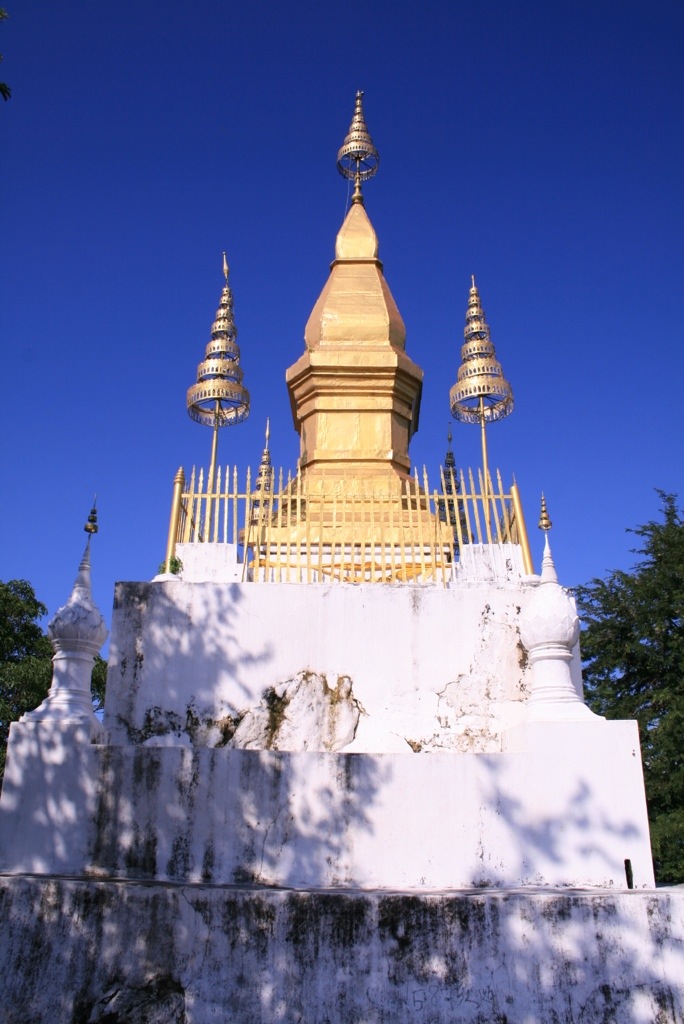To top off the hot afternoon we climbed over 300 steps to Wat Chom Si , perched on a hill which dominates the old town. The views of the Mekong snaking past town were pretty cool, however the 30 degree heat was starting to takes it toll – ice coffee and relaxation time !