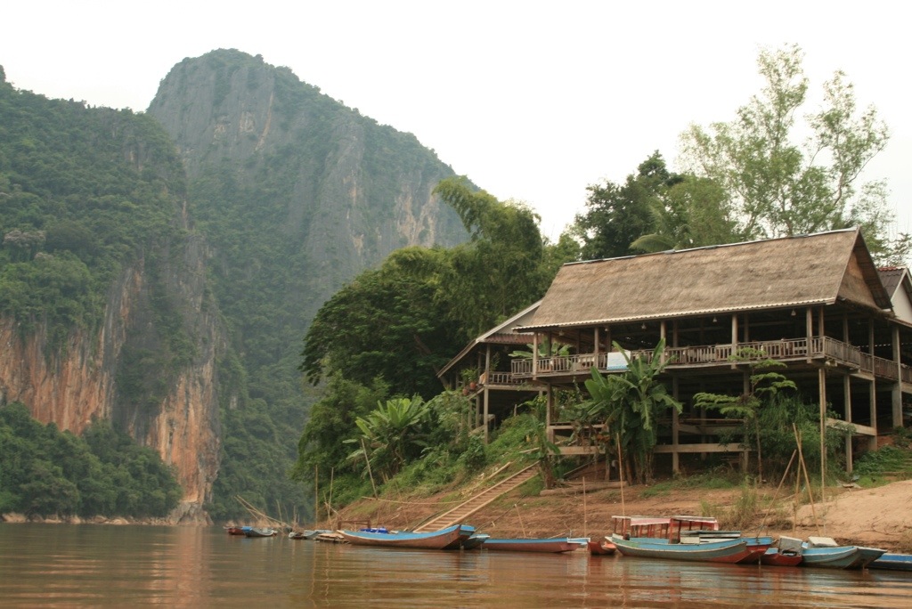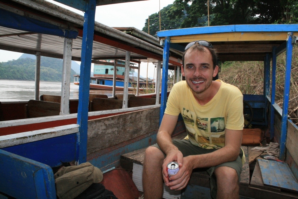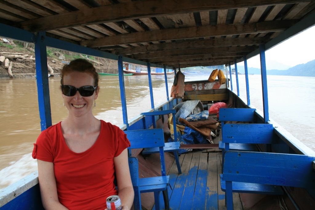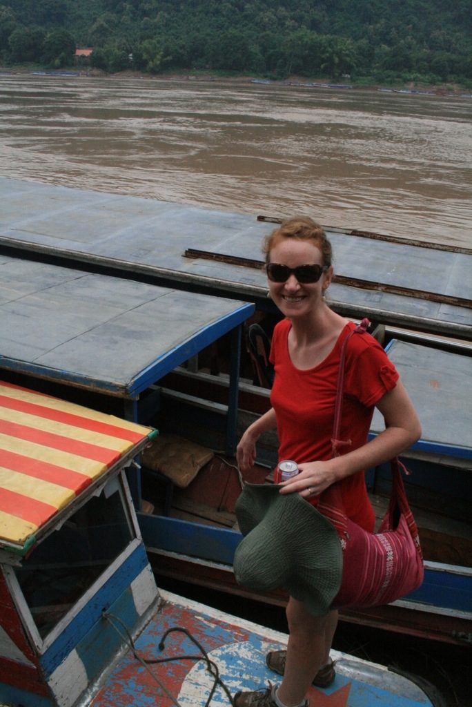 We found a keen guy, who would only leave after 11am for a reduced fee, as the river inspectors wouldn’t notice him slipping up the river and therefore he wouldn’t pay the surcharge for taking us. It was an interesting long boat run on benzene, with the driver perched behind a go-cart steering wheel at the front. The journey was a slow struggle against the powerful Mekong, the boat darting between eddies to make the 2 hour upriver journey. It was nice to enjoy the river, kaist mountain scenery and read a good book. It was also an interesting glimpse of life on the river .