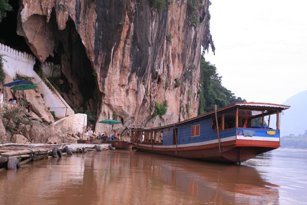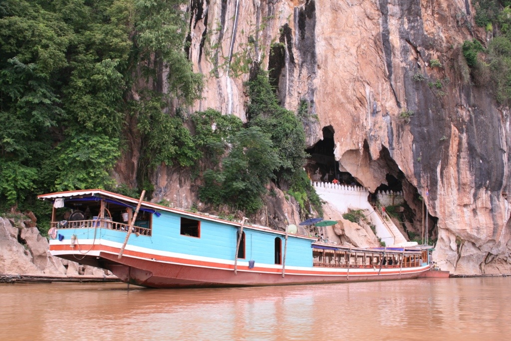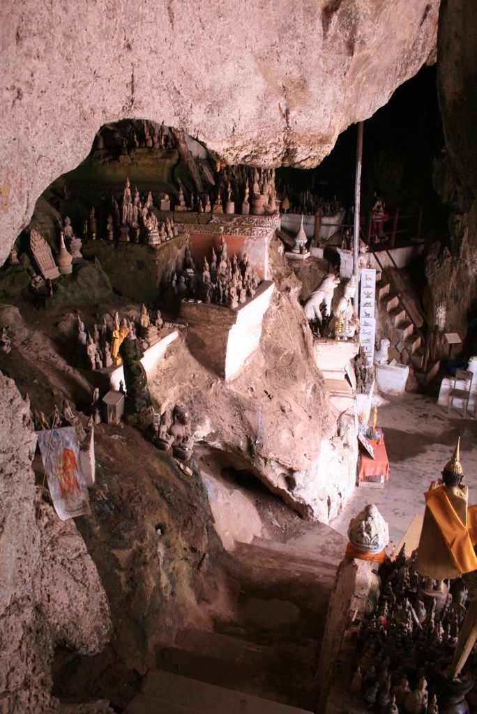 The following day we headed to the Pak Ou caves, some 25km away. The caves could be accessed by renting a motorbike and then getting a small boat over the Mekong river, or getting a boat and cruising up the Mekong. Having done plenty of motorbike adventures, we headed off to the public boat house to see what rate we could negotiate.
