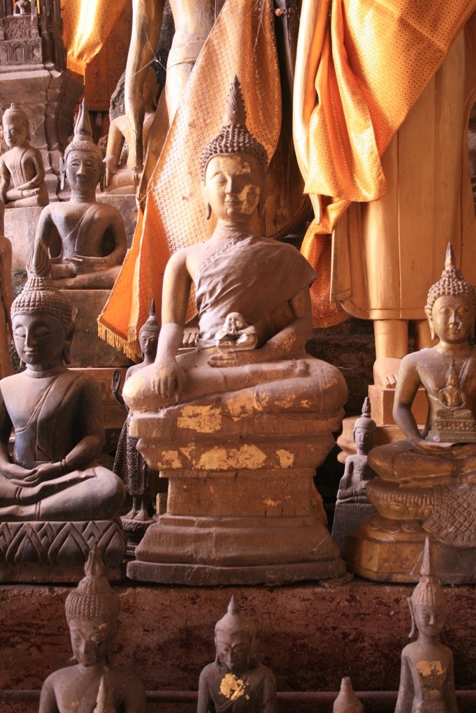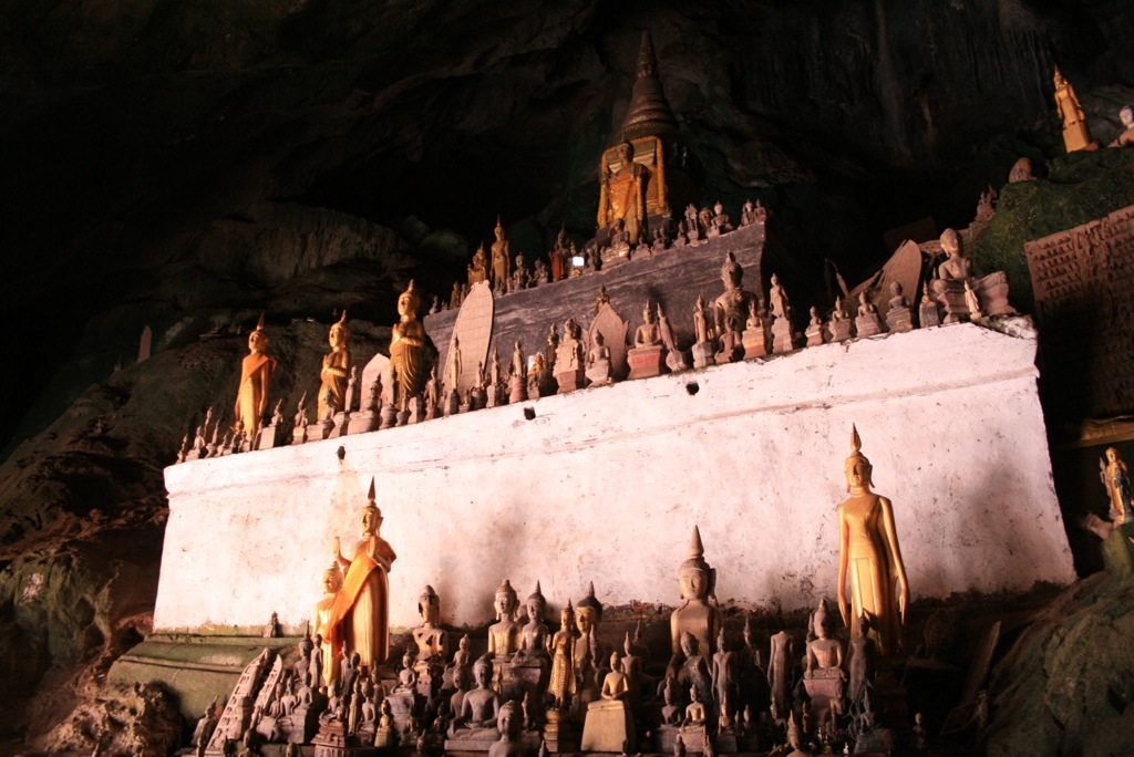 The small limestone caves held hundreds of Buddha statues, sitting atop all the exposed ledges – a pretty beautiful sight with the gold leaf and orange scarfs. The caves were located across the river from a touristy village, with small boats transporting groups across the Mekong. Although the caves were small themselves, it was nice to combined them with a trip on the Mekong.
