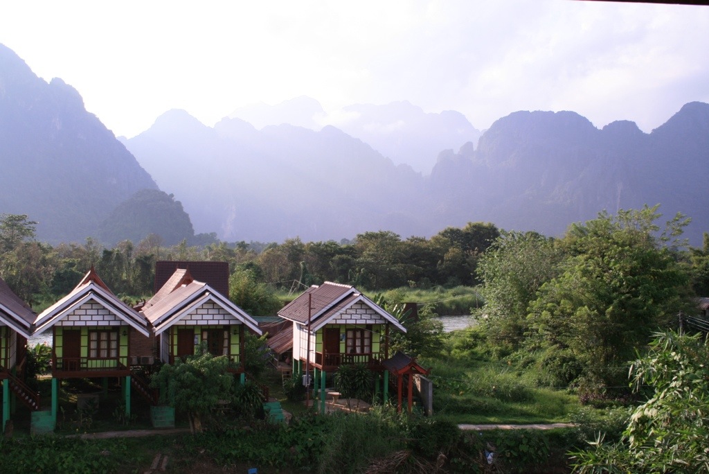 After our caving we had a good opportunity to reflect on our time in Laos over a 90cent beer Lao. The country appears to be a lost, slightly ‘ambiguous’ (like its capitals name) in the image it wishes to portray. It has its roots in Buddhism, however it seems to have embraced backpacker/budget tourism with a vengeance. A ‘half finished’ culture exists in many places. The wonderful service culture, like amongst Khmer people in Cambodia seems non existent. This attitude is summarised beautifully in a quote on wiki travel about Vang Vieng by Brett Dakin, the author of Another Quiet American – “Each time a young Australian woman strolls down the street in a bikini, a bearded American smokes a joint on a . guesthouse terrace, or a group of Koreans tumbles drunkenly out of a restaurant, it saps a little more of the essence of a town like Vang Vieng.”