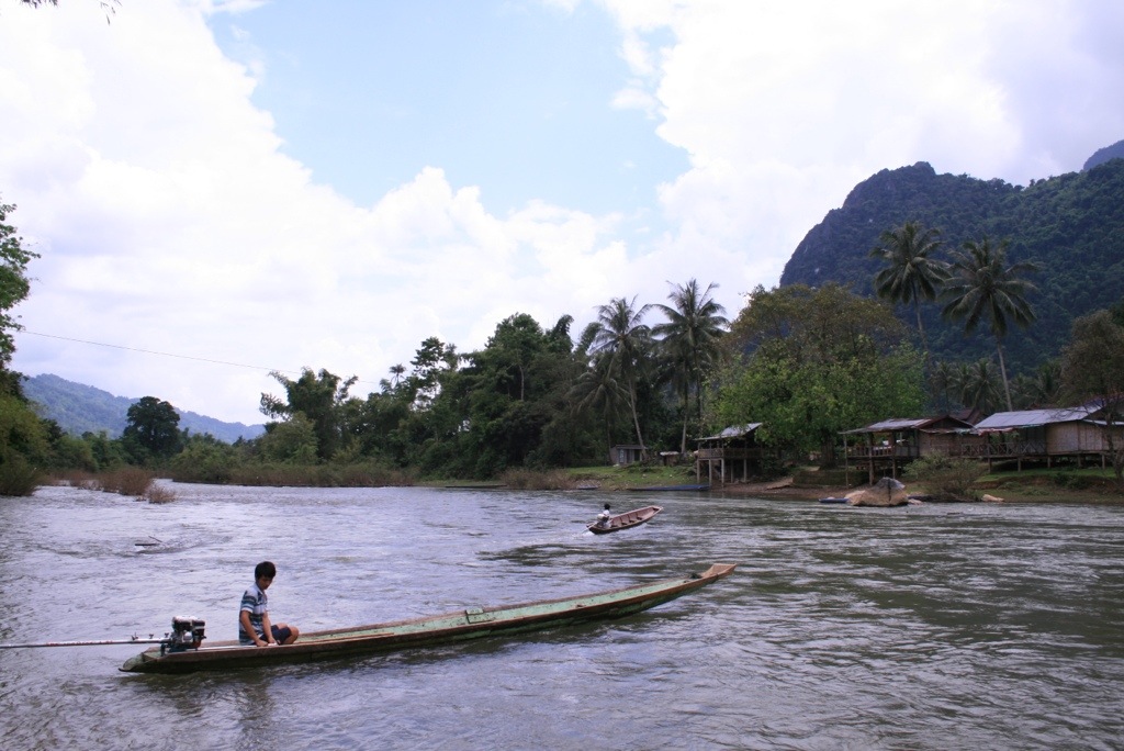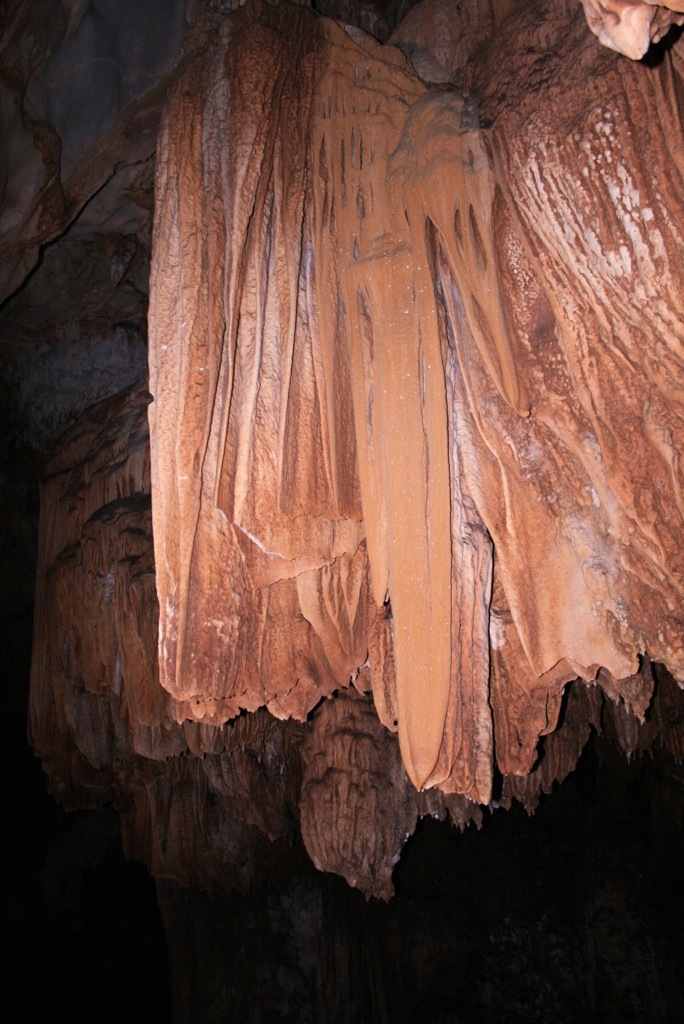 The first cave we went to a huge, a massive complex of rooms with massive stellectites/stellectites and crystal/mineral deposits covering the wall. With wet muddy floor and big holes everywhere we were glad to have a guide and not get lost. The second cave nearby was a large tunnel stretching 2km into the mountain range – all the way to a secret village. These caves had been extensively used for shelters during the Vietnam war and communist invasion in Lao.